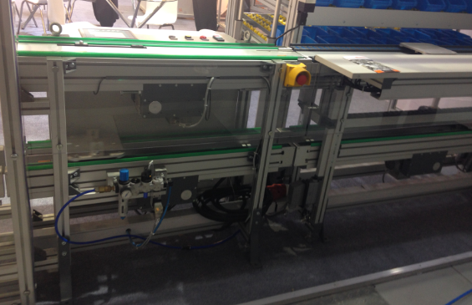 主线体为双层皮带流水线,两端为气动提升机构,和小衔接皮带线